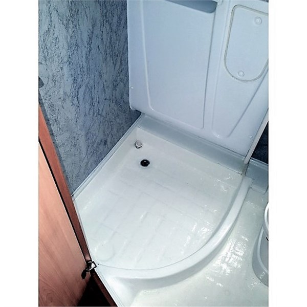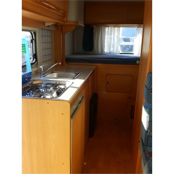 Disposizione: Dinette classica, cucina lineare lato passeggero, matrimoniale posteriore trasversale sul garage, bagno con doccia separata.