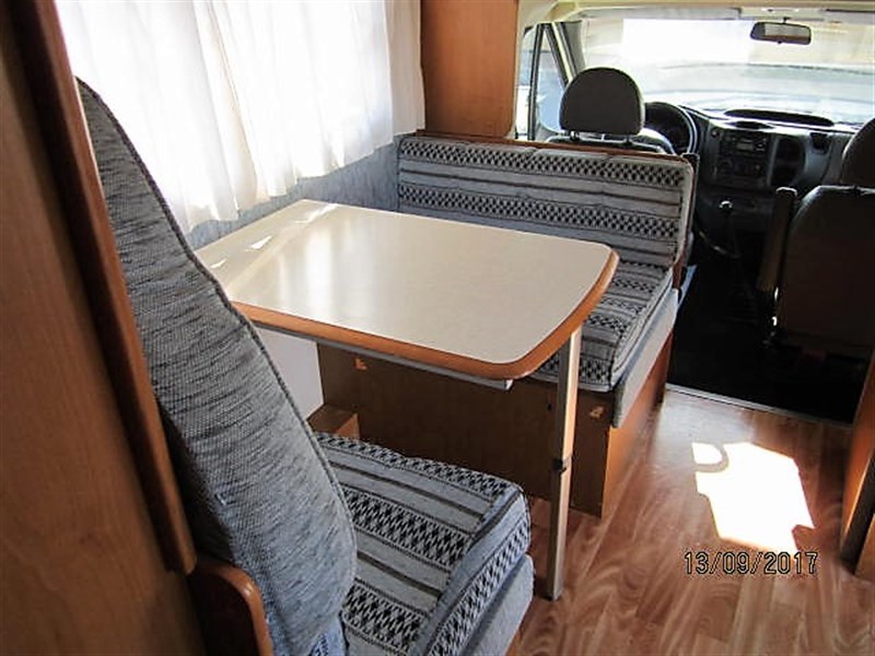 Il Kentucky Corral 3 dispone di una tra le disposizioni più comode ,con un una grande dinette e i letti posteriori trasversali che si possono trasformare in un comodo garage è dotato di frigo doppia porta da 150 lt colonna forno e riscaldamento a gasolio Webasto .