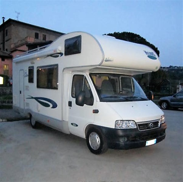 Mansardato 7 posti con doppia dinette e letti a castello longitudinali con garage a volume variabile, lungo solo 6.80 mt, 6 posti omologati, in eccellenti condizioni.