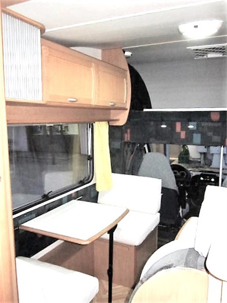 Mansardato 7 posti con doppia dinette e letti a castello longitudinali con garage a volume variabile, lungo solo 6.80 mt, 6 posti omologati.
