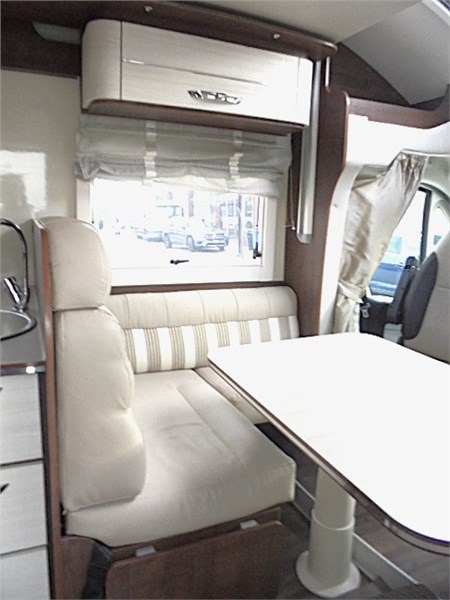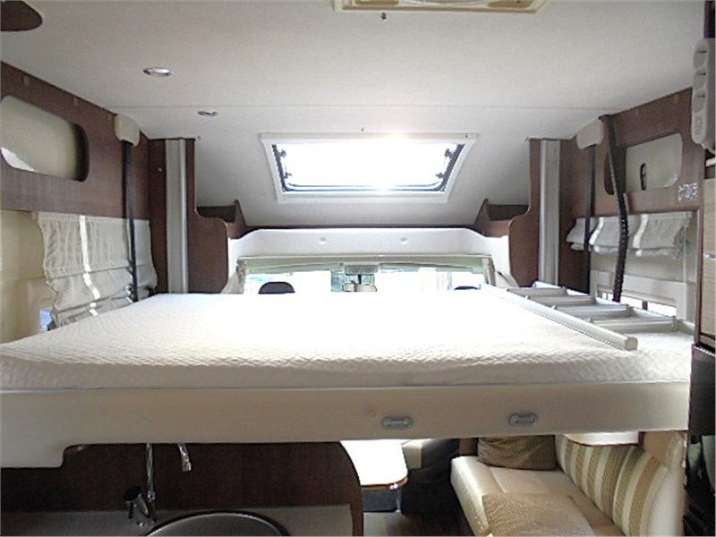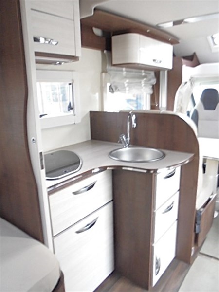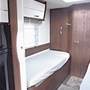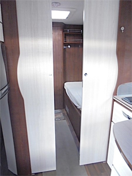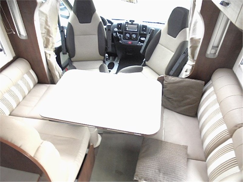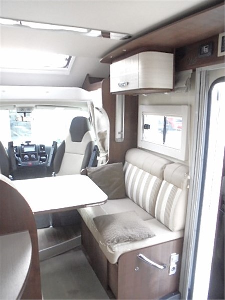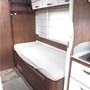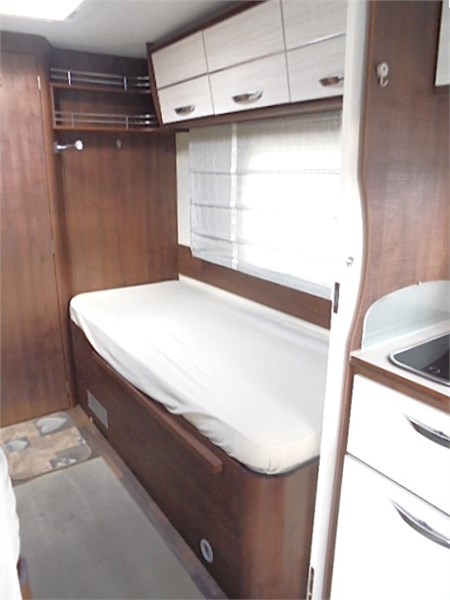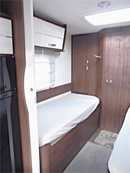Disposizione: grande zona living con salottino a elle e sedili girevoli, cucina a elle, frigo da 160lt, porta centrale scorrevole che separa la zona notte, due lettini longitudinali contenitori, grande bagno in coda con doccia separata.